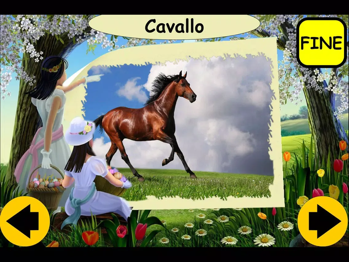 Fare click sull'immagine dell'animale per sentire il verso reale in natura o toccare il testo del nome per sentire l'audio della pronuncia.