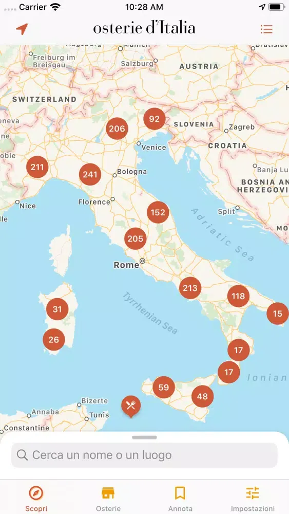 1656 locali selezionati da Slow Food attraverso visite anonime in tutta Italia.