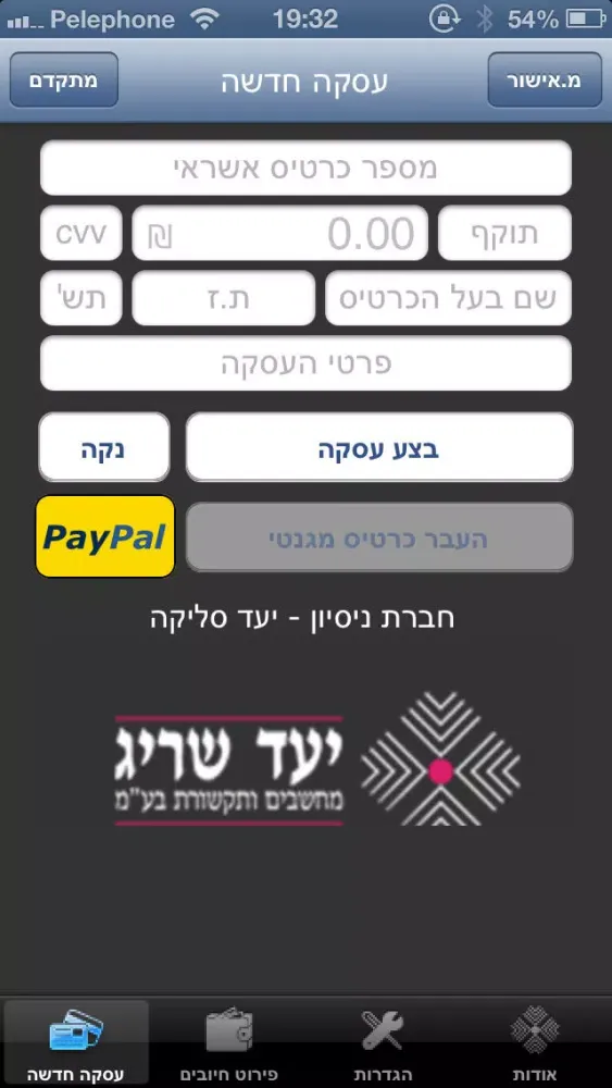 שת"פ ייחודי בין יעד סליקה לPayPal מאפשר כיום לבצע חיובים באמצעות PayPal ישירות מהאפליקציה.