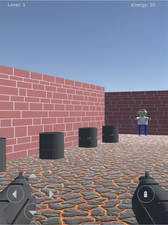 To move in the game, press the arrows marked on the screen in the direction you want to move. By pressing the button with a cross you stop, and if you want to shoot, press the button represented by a bullet.