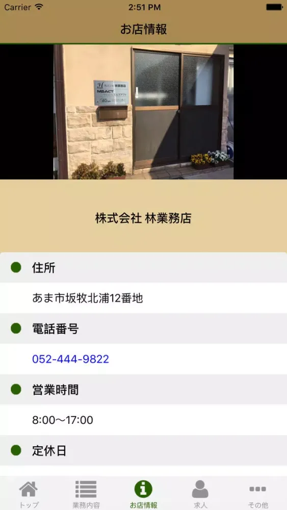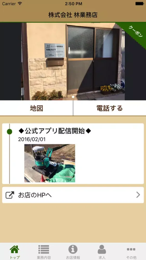 (株)林業務店の公式アプリです。 このアプリでは、アプリユーザー限定の様々なサービスを受けることができます。 例えば... ・林業務店の最新の情報を入手することができます。 ・林業務店の事業内容 ・林業務店関連の事業紹介 ・ご利用頂けている他店舗様の活用方法を共有することができます。 ・標準アプリのマップを起動させてお店の位置を確認することができます。 ・公式ホームページなどもすぐにチェックできます。