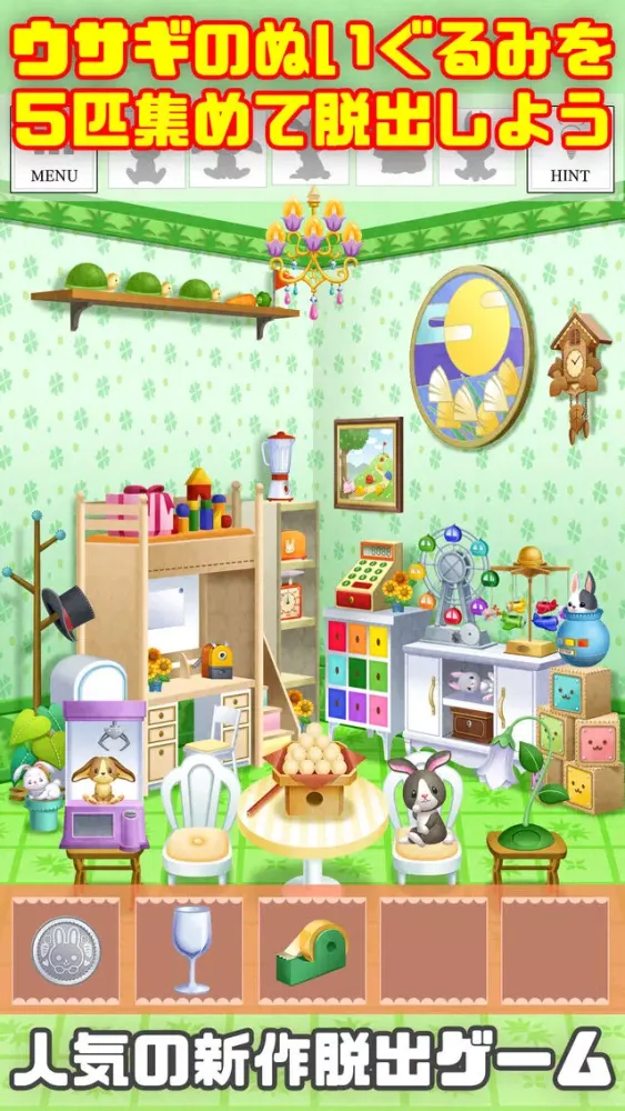 カワイイうさぎのヌイグルミを5匹集めて脱出しよう!