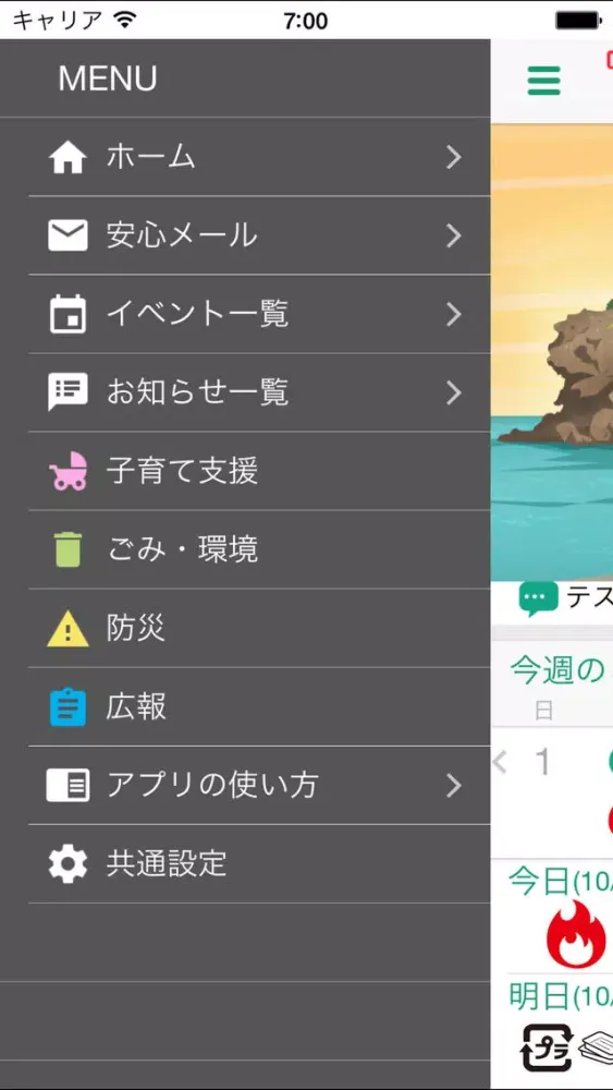 アプリをダウンロード後、利用者が興味のあるカテゴリを選択することで、知りたい情報だけを表示し、プッシュ配信で受け取ることができます。安心メール配信機能、子どもの予防接種管理や妊産婦検診管理などの子育て支援に関する機能、家庭ごみの分別辞典やごみの出し忘れ防止アラート機能など多数のメニューをご用意しておりますので、ぜひご利用ください。