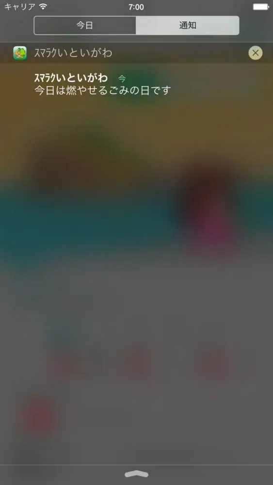収集予定のごみ種別を前日と当日にアラートでお知らせします。時間は自由に設定することができます。