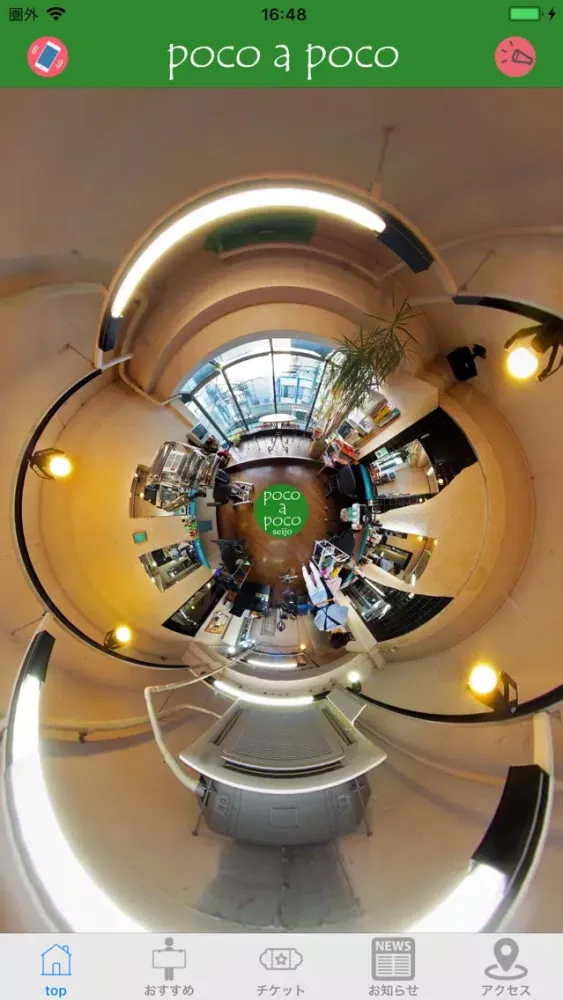 360度パノラマ画像でのお店の内観の閲覧や、お店へのアクセスなどの店舗情報の確認、またお得な情報などの最新のお知らせを確認することができるアプリケーションです。