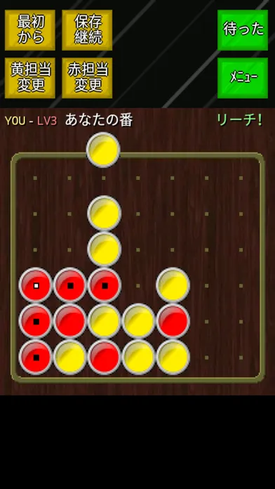 AIの強さが5段階から選べる「重力付き四目並べ」です。