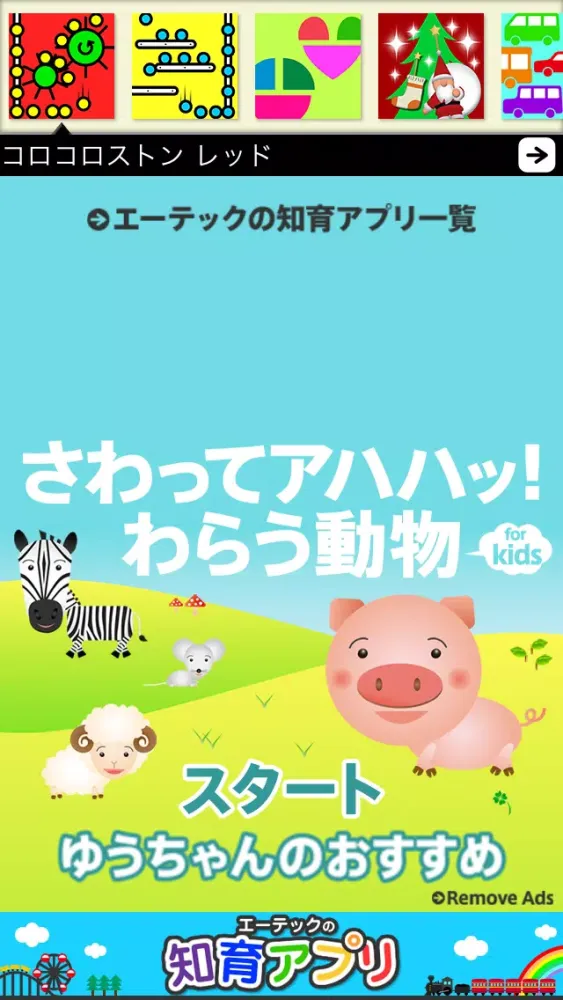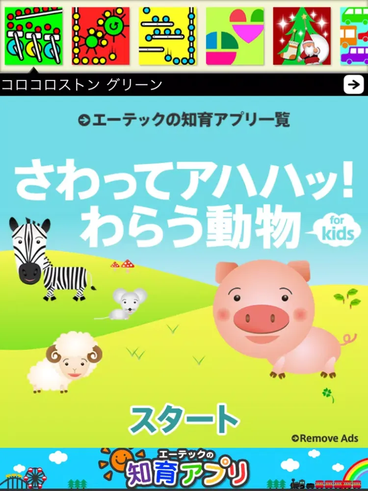 動物たちと楽しく笑いあう幼児向けアプリ。