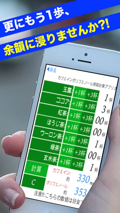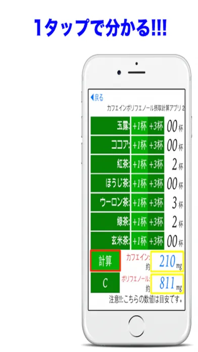 Tangkapan skrin カフェインポリフェノール摂取計算アプリ 2