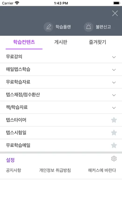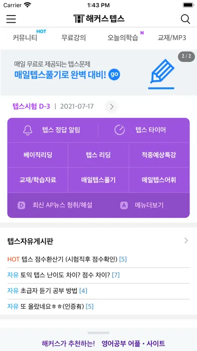 1. 매일 텝스풀기 / 매일 텝스보카 등 학습컨텐츠 제공