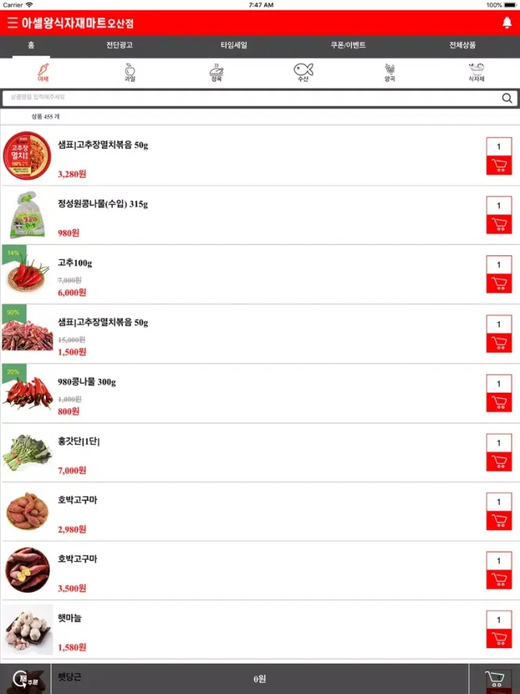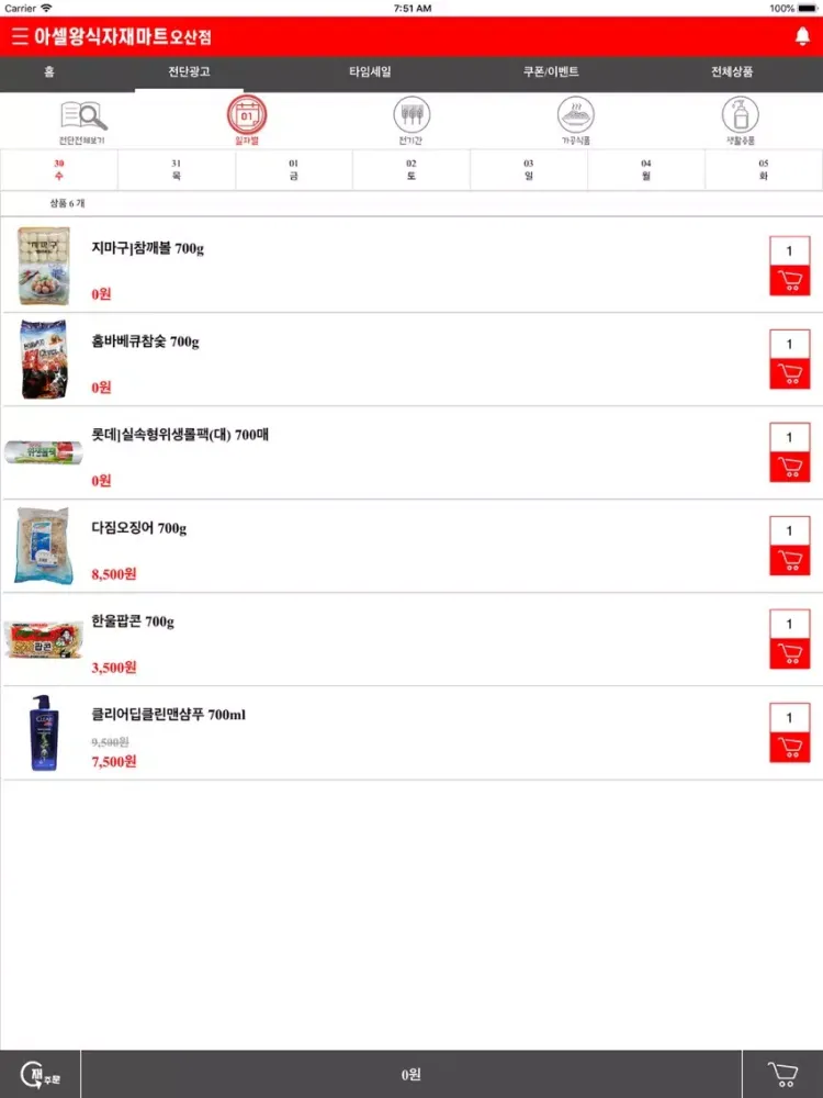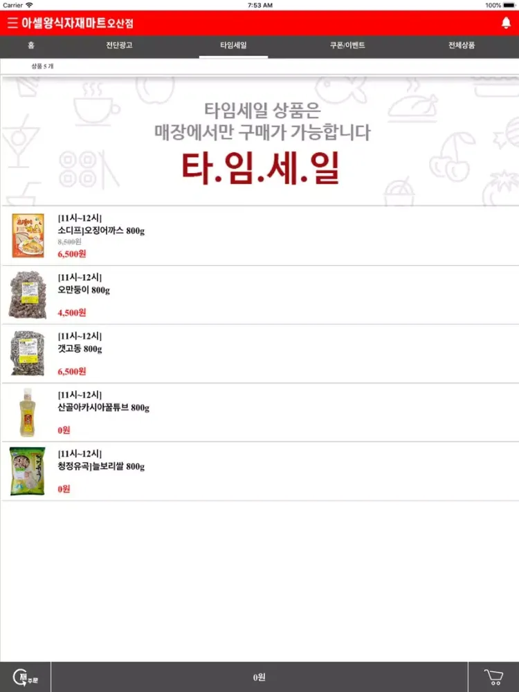 아셀왕식자재마트 오산점에서 진행중인 행사상품을 기간별, 종류별로 구분하여 알려드립니다.