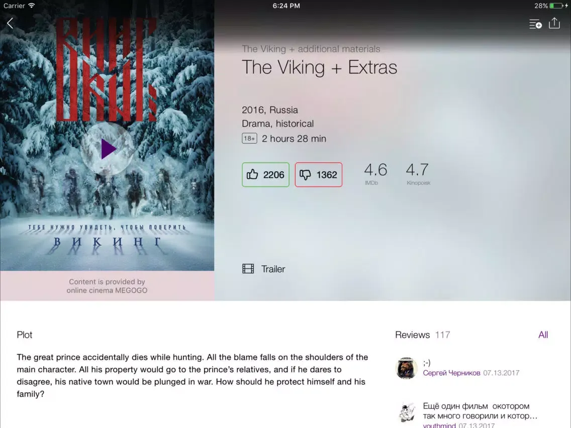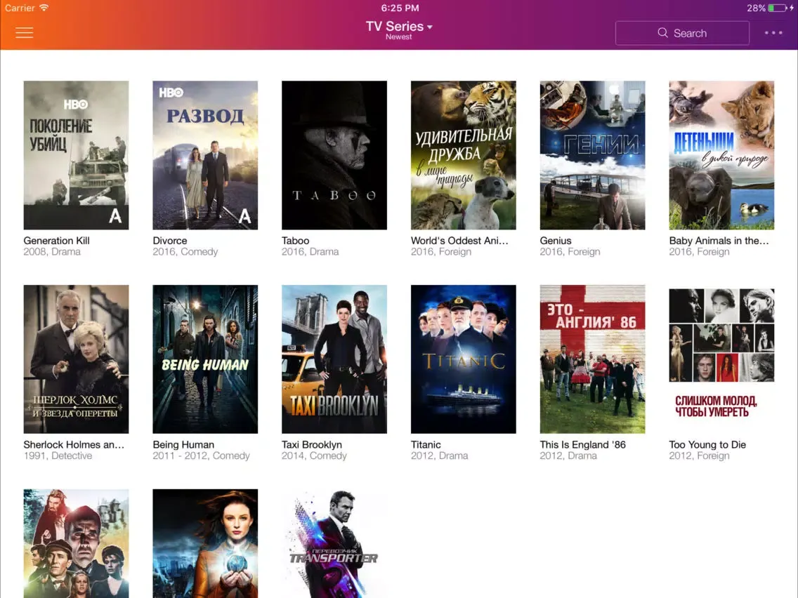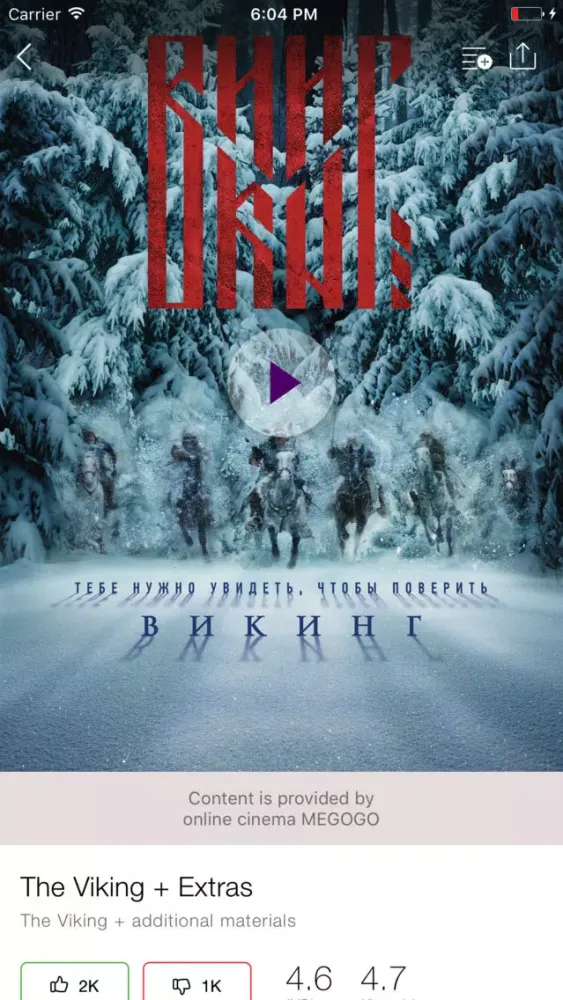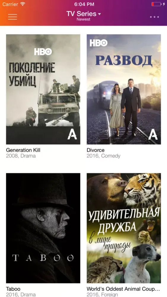 • Hollywood blockbusters and new releases with the ability to choose the soundtrack, subtitles and video quality.