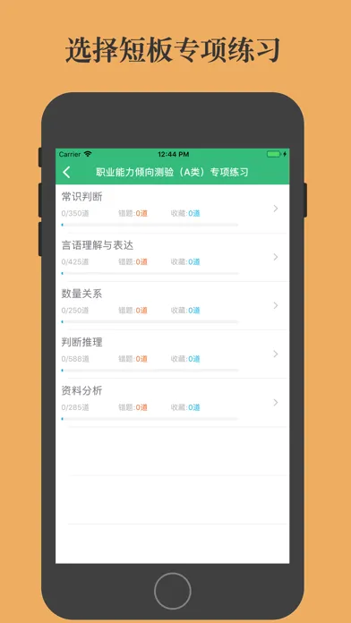 1、专项试题练习:针对A类(综合管理类)、B类(社会科学专技类)、C类(自然科学专技类)、D类(中小学教师类)、E类(医疗卫生类)的习题进行强化练习,可选择不同题型,并可手动将易错或未牢固掌握的题加入复习库和错题库,以便反复练习。