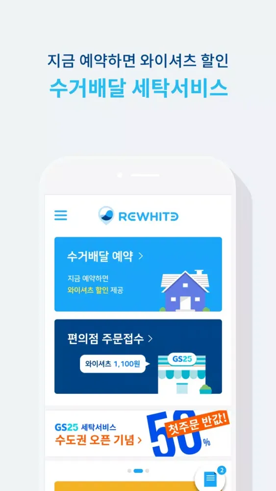 - 언제든 편한 시간에 GS25 편의점에서 리화이트 세탁 주문을 접수하세요.