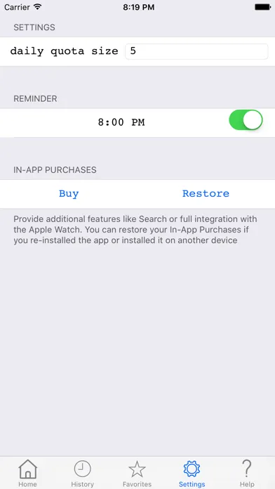 Use the companion Apple Watch app to quickly add ideas using dictation, and see your progress on the watch face (without the In-App Purchase adding ideas through the watch is limited to one idea a day).