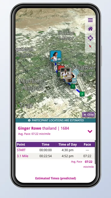 * Participant times, paces, estimates and places in real-time