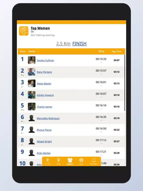 • Web Tracker for family/friends/colleagues to track performance