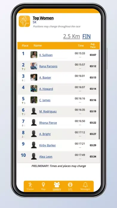 • Push Notifications to spectators tracking the runners