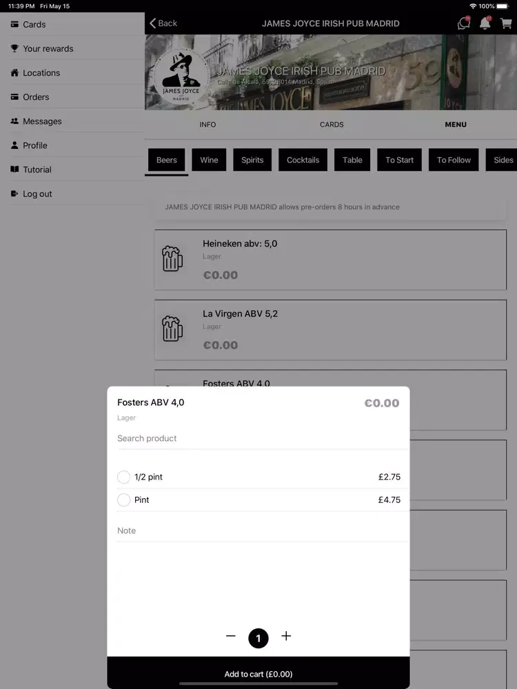 Order our food and drinks from the comfort of your home or office to collect later. You can even collect loyalty points and earn rewards.
