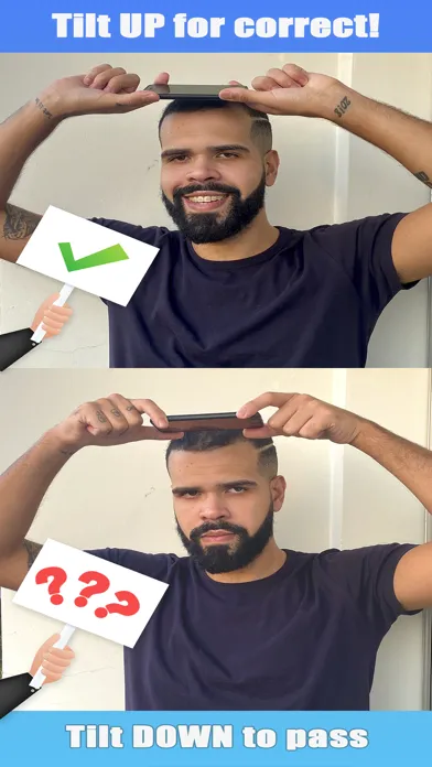 Choose a deck from over 100 decks available to play or create your own deck and play as you wish! Place device on forehead e ask your friends to help you guess what is on your device! They can dance, sing, mimes or give you clues... Play whatever you want! Just tilting your phone up (correct) or down (pass) to continue. Easy, right? You just need to guess the word or phrase and guess what your are!