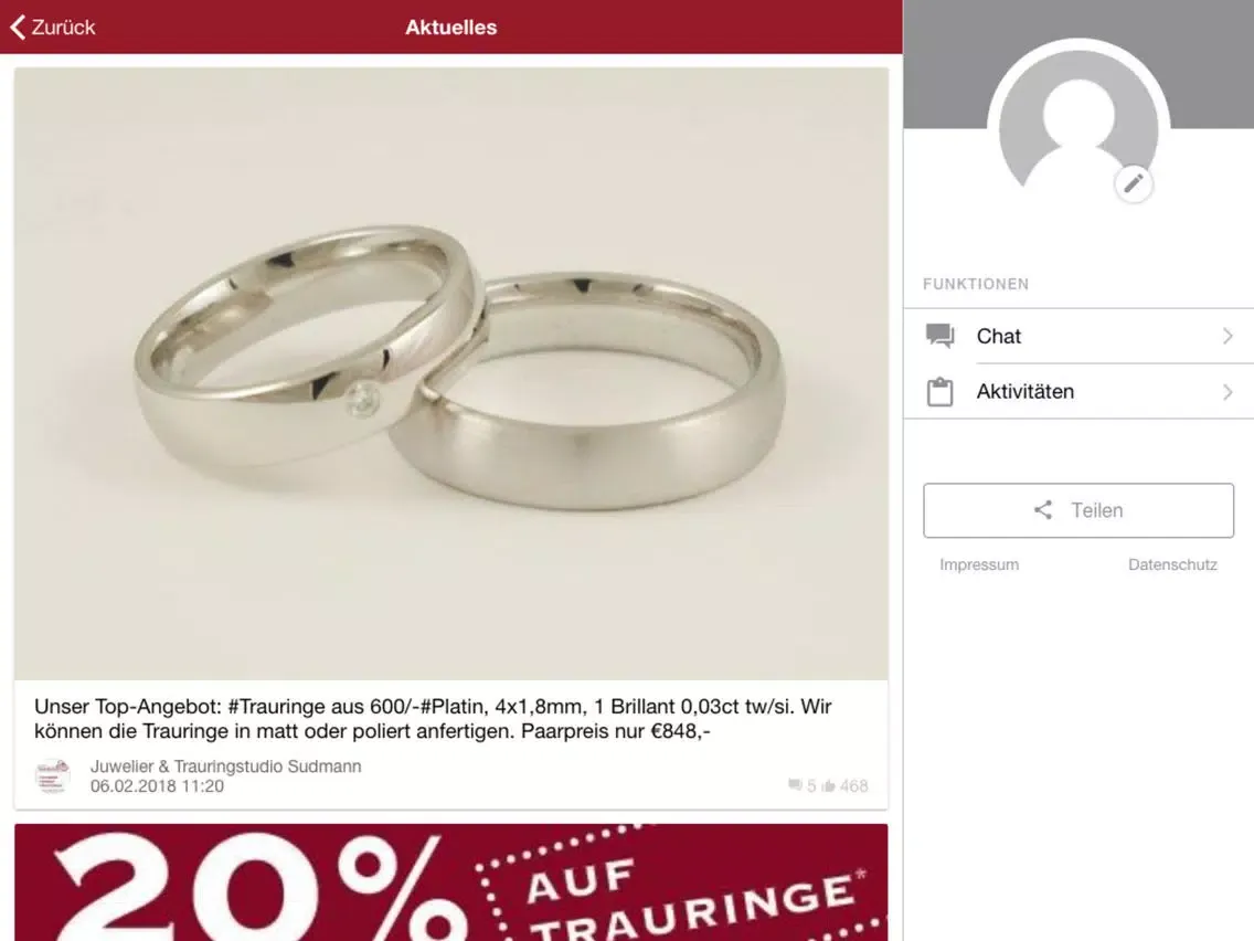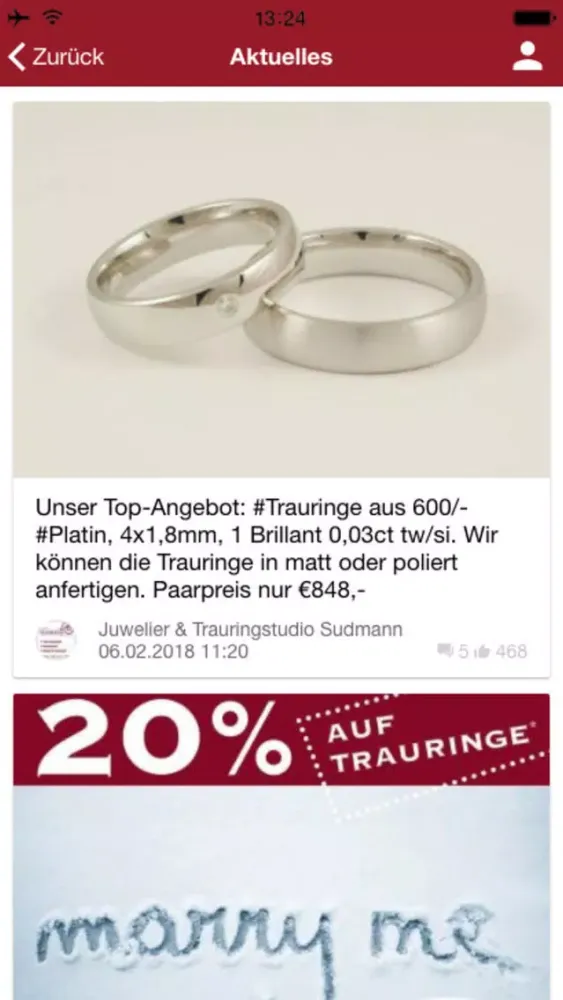 Mit der App von Juwelier Sudmann werden Sie bestens informiert und erhalten einen Überblick über unser Sortiment, das eine Vielfalt an Uhren, Schmuck und Trauringen verschiedener Hersteller umfasst.