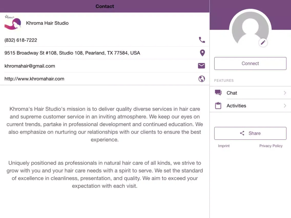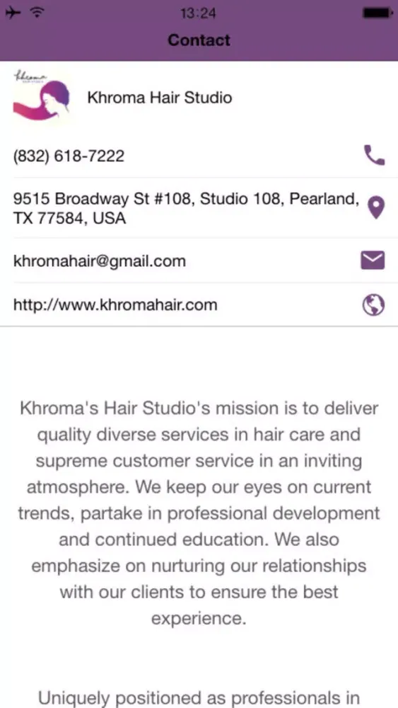 At Khroma Hair Studio our mission is to offer diverse artistry in hair styling, quality customer service in a timely manner and to develop authentic relationships with all of our clients in a professional atmosphere. Download now our app and book your next appointment via the app and contact us directly.
