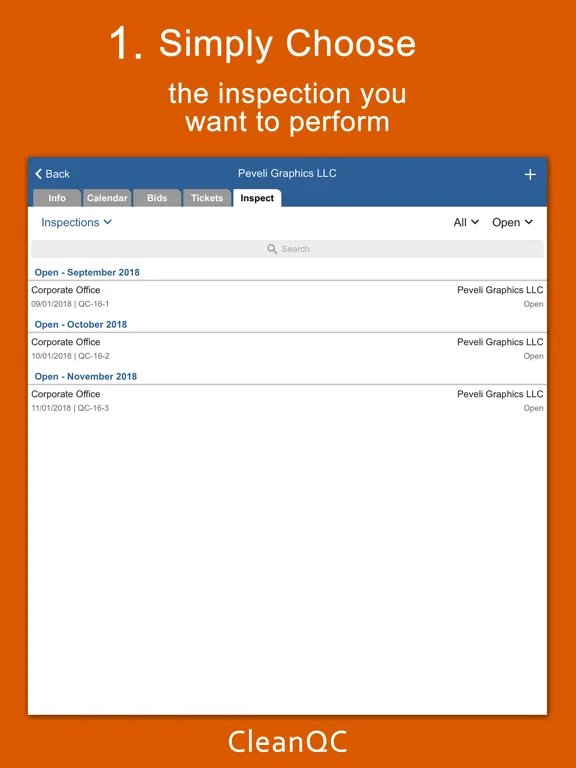 • Save Time, Fast Set-Up! Simply choose a janitorial bid or building type (office, medical etc) to start your customized inspection