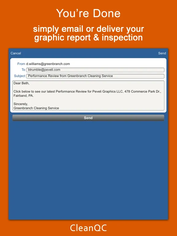 • Engage Customers! You’ll love emailing or personally delivering our one-of-a -kind ‘Performance Review' of any inspection, for any customer, at any time – highlighting your quality control efforts in an easy-to-understand, graphical format.
