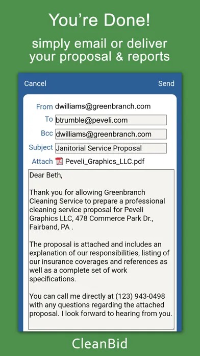 • Customized Bids! You’ll love giving building owners and property managers customized cleaning proposals including your company logo as well as a list of references and detailed job specifications.