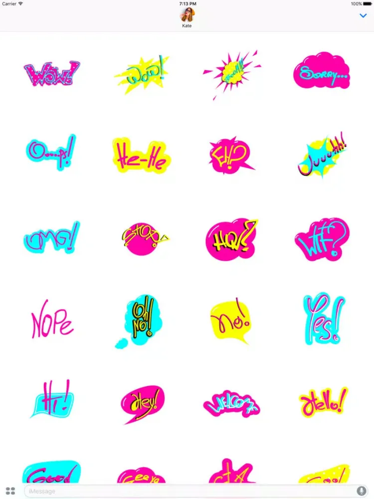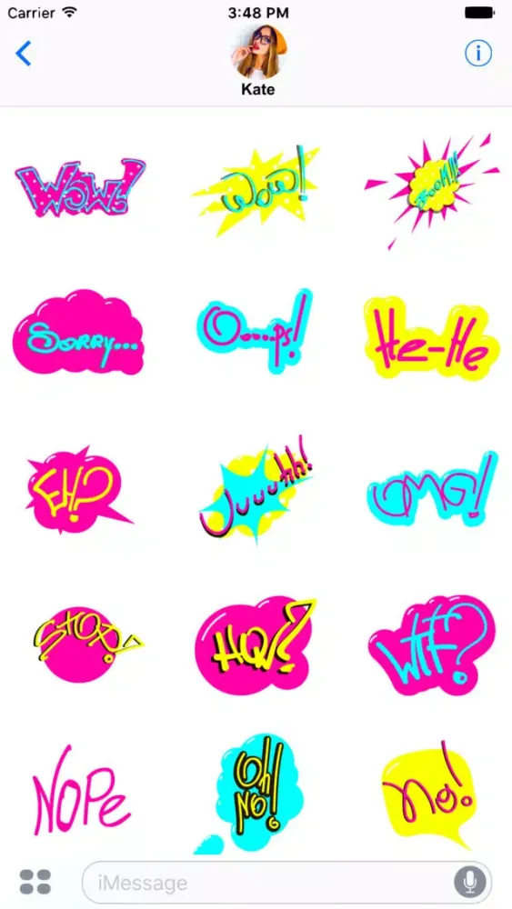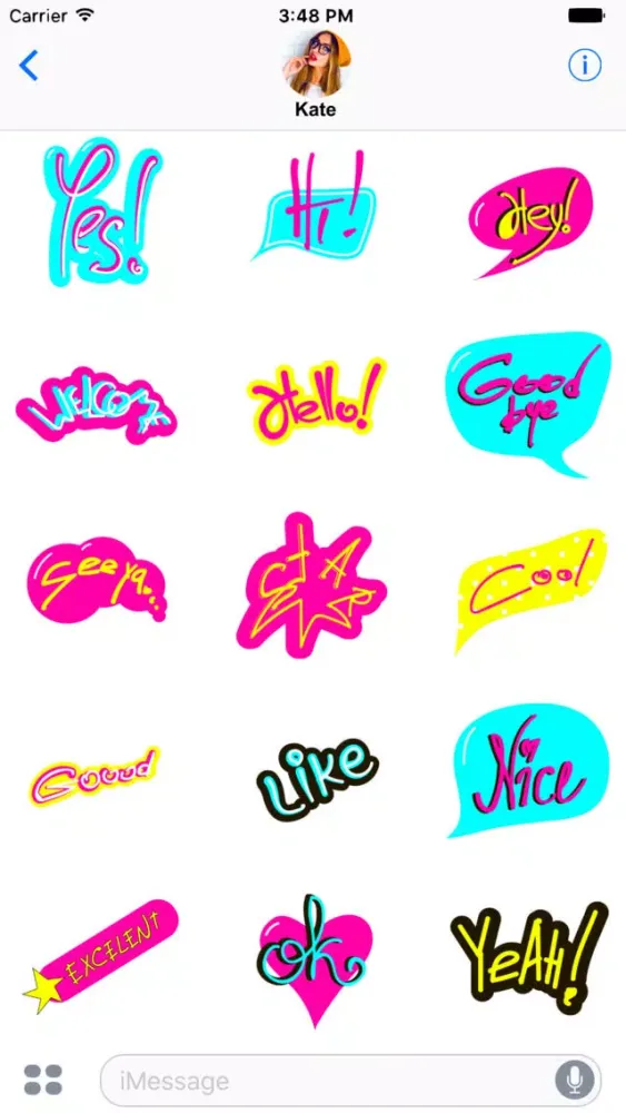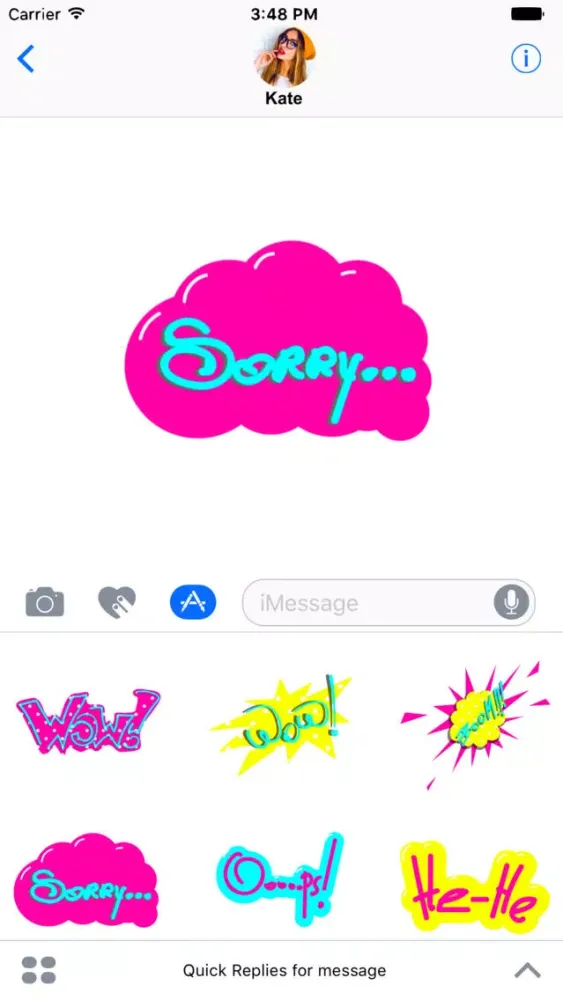 To use the sticker pack, download the app to your phone and select the emoji in the iMessage app drawer. Peel off (long press and drag) Quick Replies Stickers and place them anywhere in your conversation. Tap on a sticker to quickly send a sticker reply.