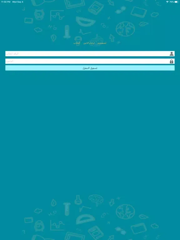 يمكنك الدخول بالرقم المدني للمعلم او الطالب