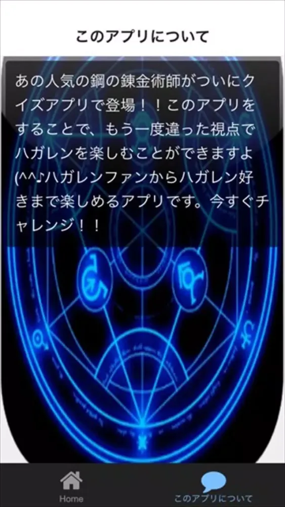 あの人気の鋼の錬金術師がついにクイズアプリで登場!!このアプリをすることで、もう一度違った視点でハガレンを楽しむことができますよ(^^ハガレンファンからハガレン好きまで楽しめるアプリです。今すぐチャレンジ!!
