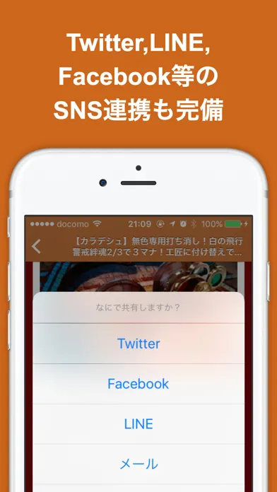 Twitter, Facebook, LINE等のソーシャル連携も万全!どんどんシェアしよう!