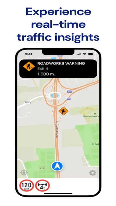 With Kapsch TrafficAssist, you'll have a comprehensive driving screen at your fingertips. It seamlessly combines a map-based display with real-time notifications and signage, ensuring you stay updated with relevant information while on the road. Our app utilizes location, travel direction, speed, and area of interest to filter and display traffic messages and events relevant for you.