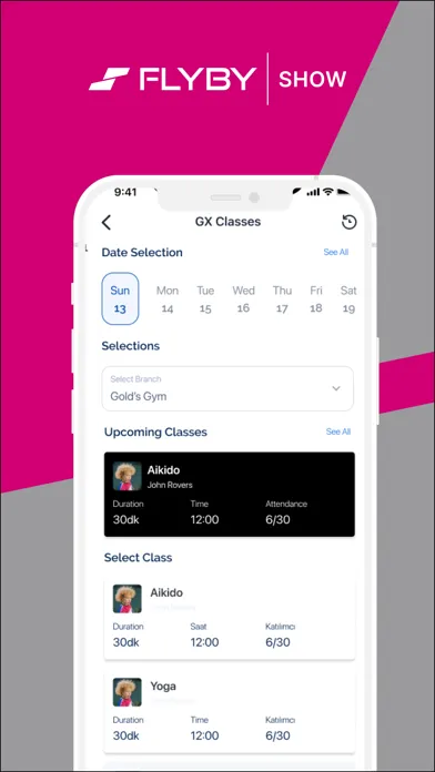 FlyBy SHOW üyeliğinizi yönetmek için kullanılan bir IOS uygulamasıdır. Müsteri Programları, Ölçümleri, Rezervasyon Alma, Hizmet Satın Alma, Stüdyo Ders İşlemlerini gerçekleştirebilen Senkron Yazılım tarafından üretilmiş bir IOS uygulamasıdır.