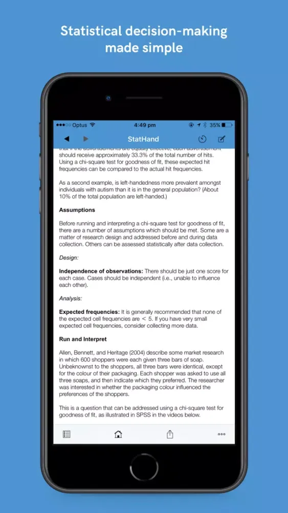 This app is one of the outcomes of an Australian Government Department of Education and Training funded collaboration between five universities: Curtin University, the Australian National University, the University of New England, Griffith University and the University of Bristol. Its objective is to harness mobile learning technologies to build students' statistical decision making capacities. Links to peer-reviewed published work supporting the efficacy of StatHand can be found in the Publications section of the app or online at https://stathand.net/home/publications.