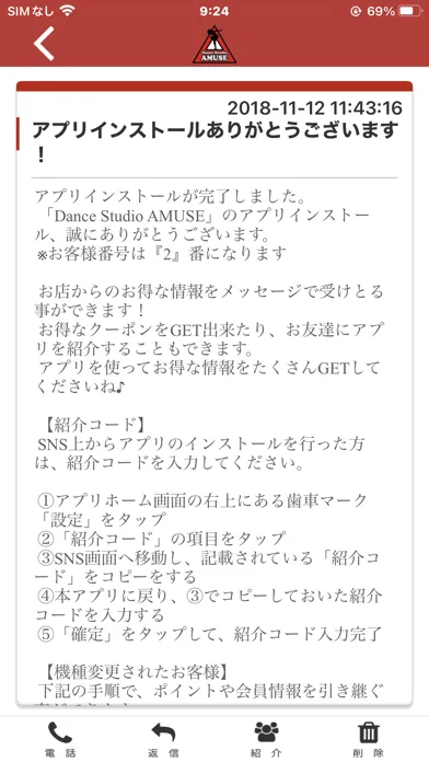 AMUSEのアプリをSNSを通じてお友達に紹介する事ができます。