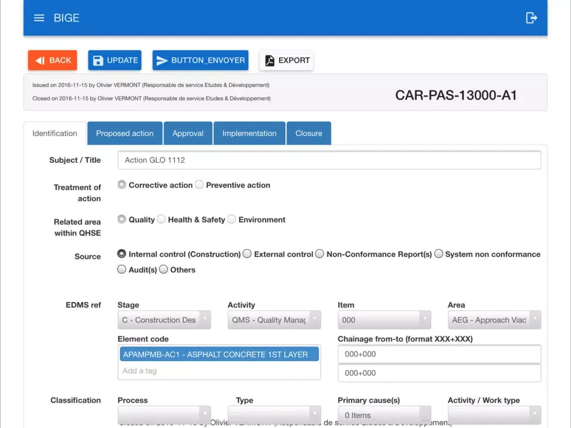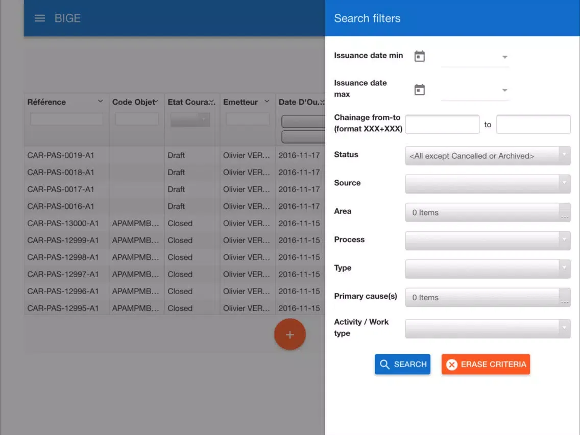 BIGE permet de digitaliser la gestion des écarts et d'assurer un suivi précis du processus de gestion de ces écarts sur un chantier.