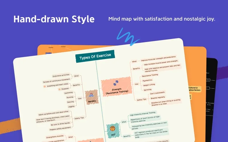 • Hand-Drawn Style: Switch the mind map into hand-drawn look with just a click. Let’s mind map with nostalgic joy.