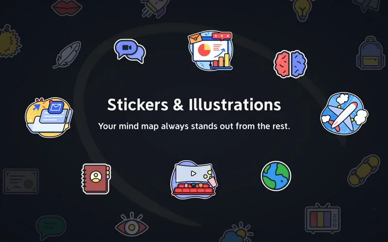 • Elaborate & Decorate: Elaborate to widen your topic, insert images, audio note, label, hyperlink, etc. Choose markers and stickers to make mind mapping fancy and comprehensive.