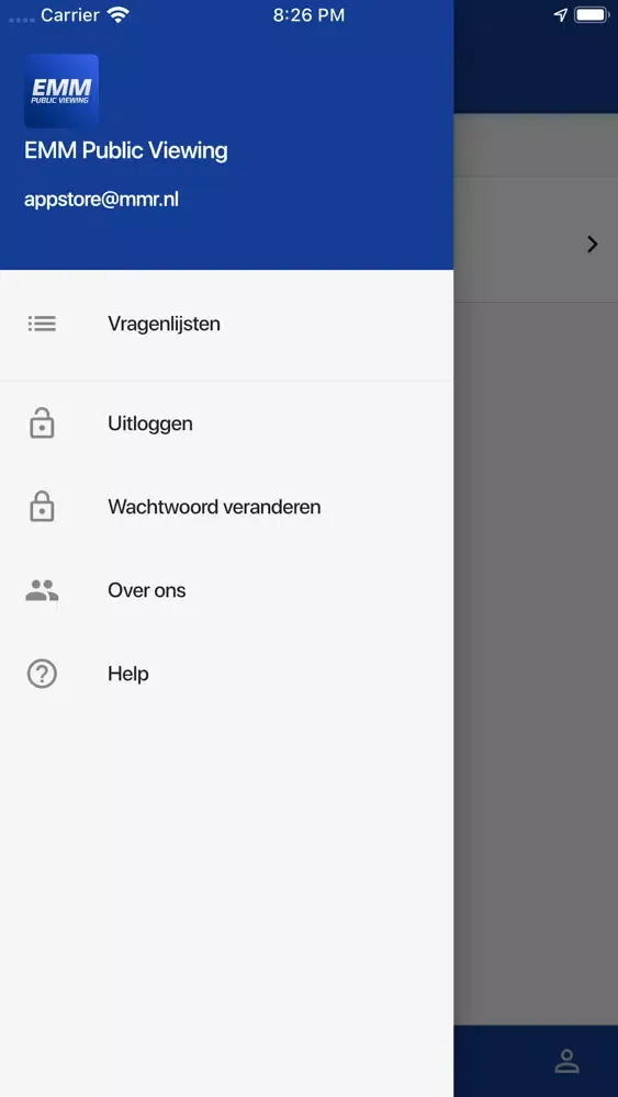 Je kunt aan een onderzoek deelnemen door in te loggen bij 'Instellingen' met je e-mailadres en ontvangen wachtwoord. De inloggegevens ontvang je van je manager.