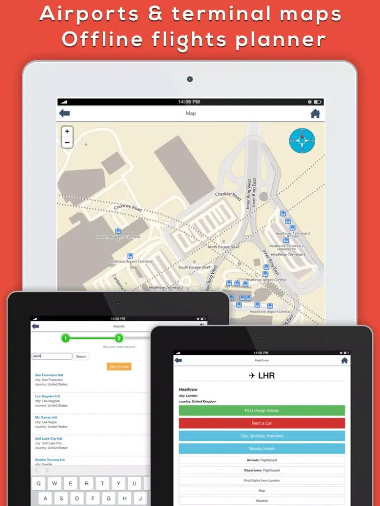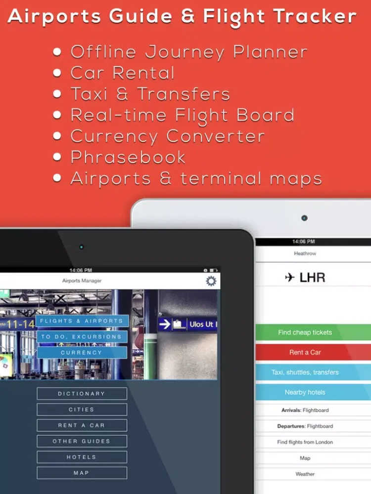 تصاویر London Heathrow - LHR Airport. Flights, car rental, shuttle bus, taxi. Arrivals & Departures. iPad