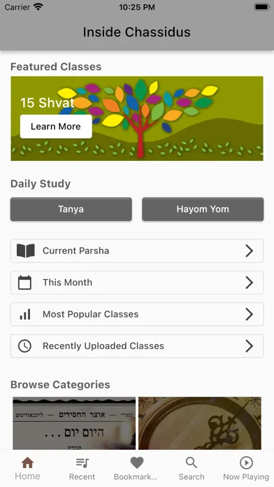 * Quick access to timely classes - today's Tanya, this weeks Parsha, and more
