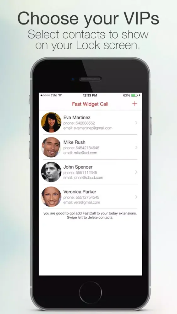 Thanks to the newly introduced features of iOS8, FastCall gives access to your VIP contacts directly from your Lock screen on the Today page.