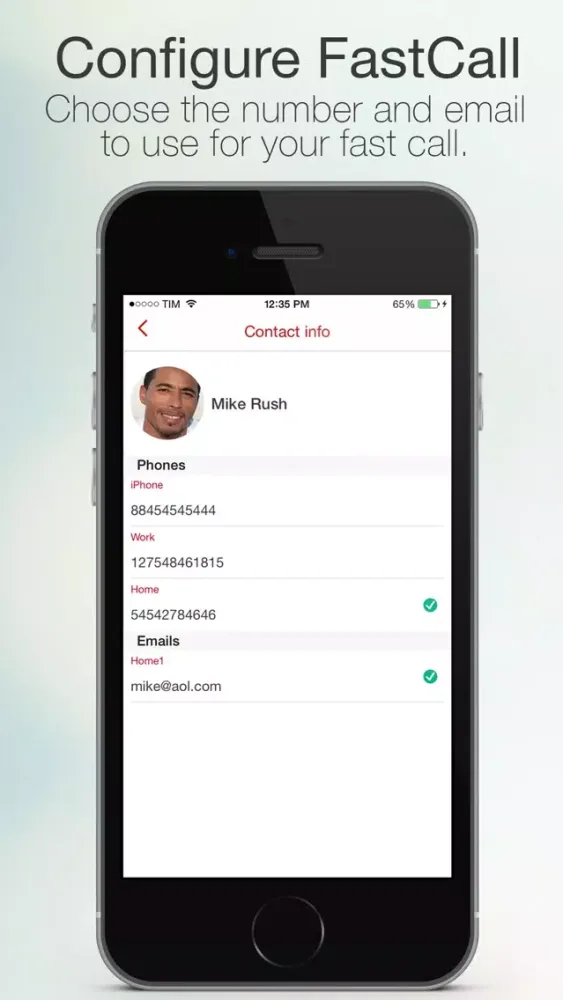 For each contact you can choose the number and email to use for your fast call.