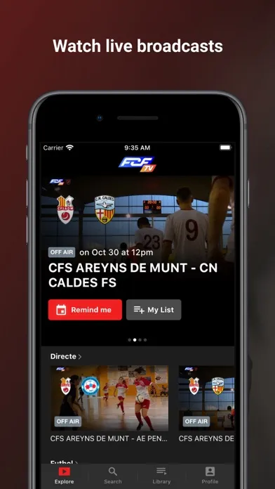 Through this application you will be able to see live broadcasts, as well as the Catalan Football Federation programming.