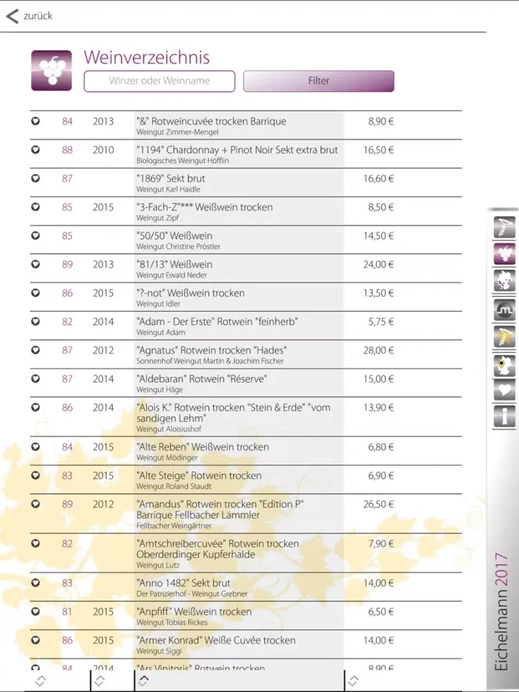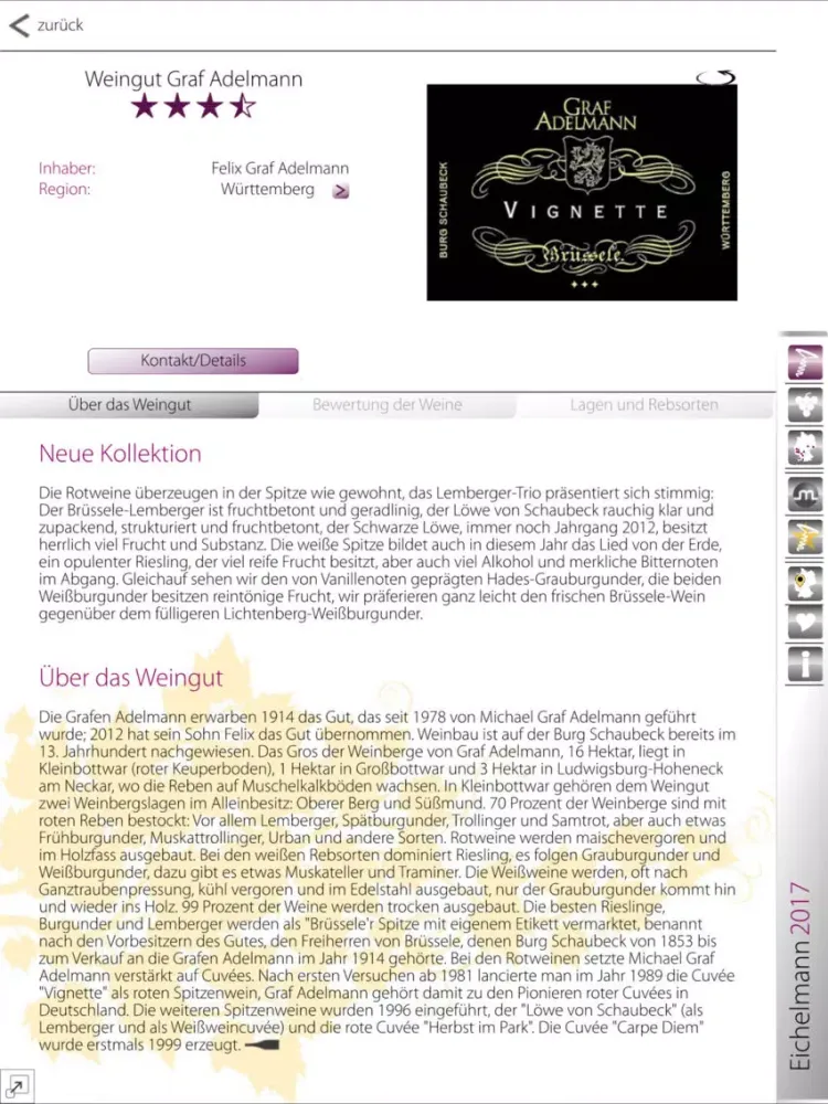 Die jährliche Bestandsaufnahme deutscher Weine ist auch als App erhältlich. Die Basisversion bietet fünf ausgewählte Weingüter und deren Beschreibung und Weinbewertungen. Die vollständigen Informationen des neuen Jahrgangs und alle Weinbewertungen können kostenpflichtig als InApp-Kauf erworben werden.