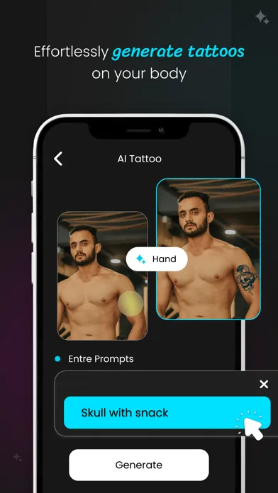 Looking for the right design for your next tattoo? With AI Tattoos you become a tattoo artist yourself. Each tattoo design is absolutely unique and there are no limits to your creativity