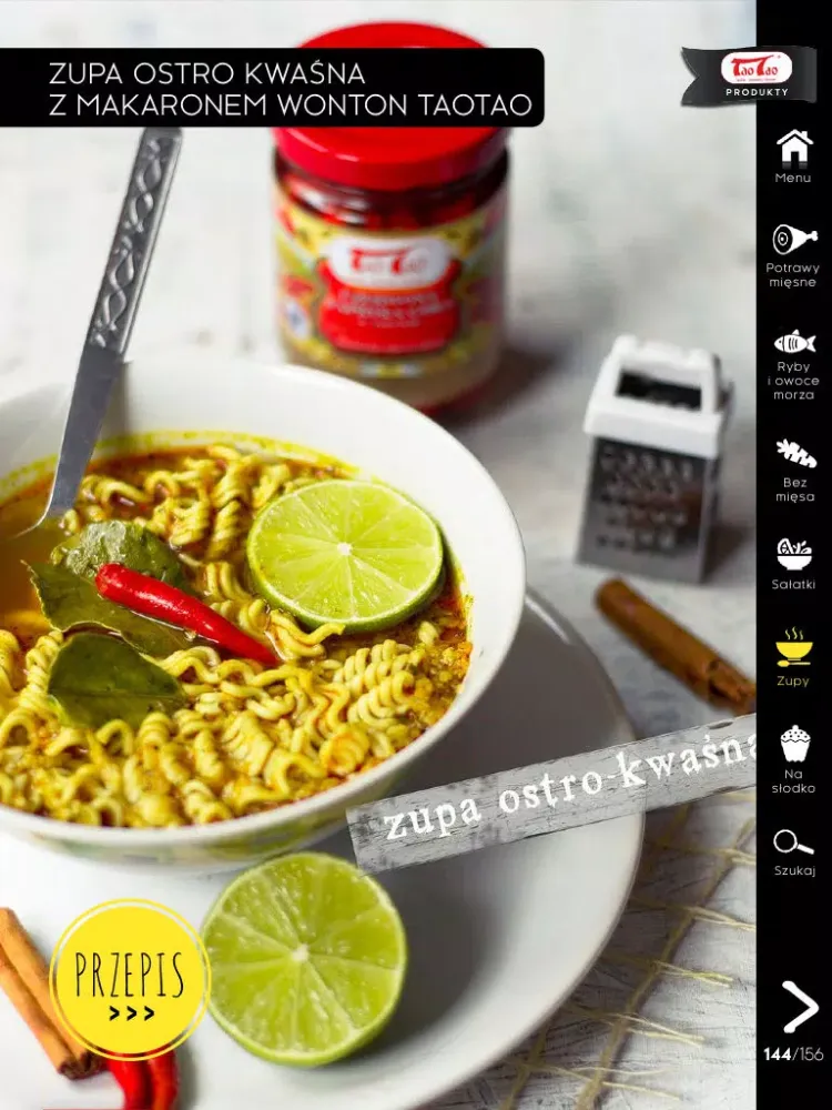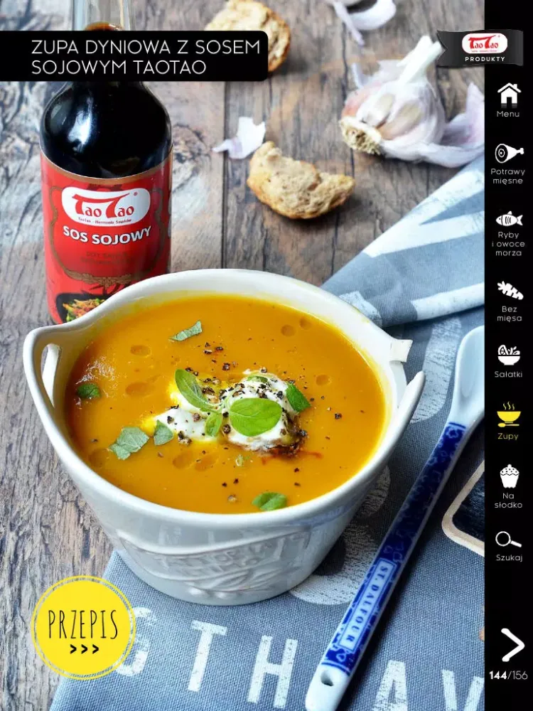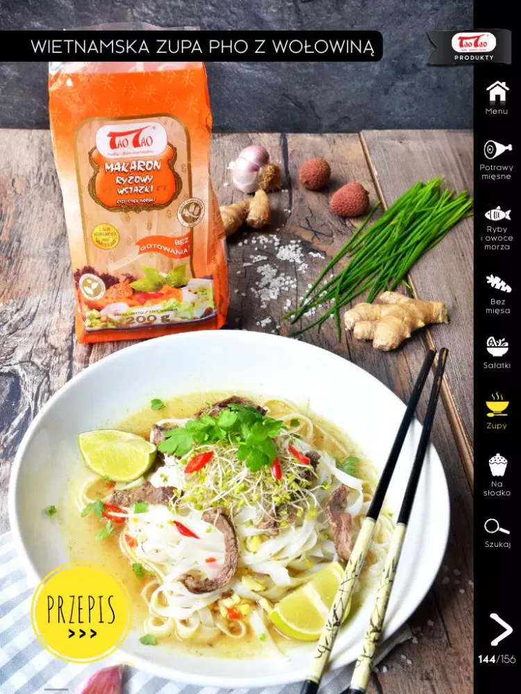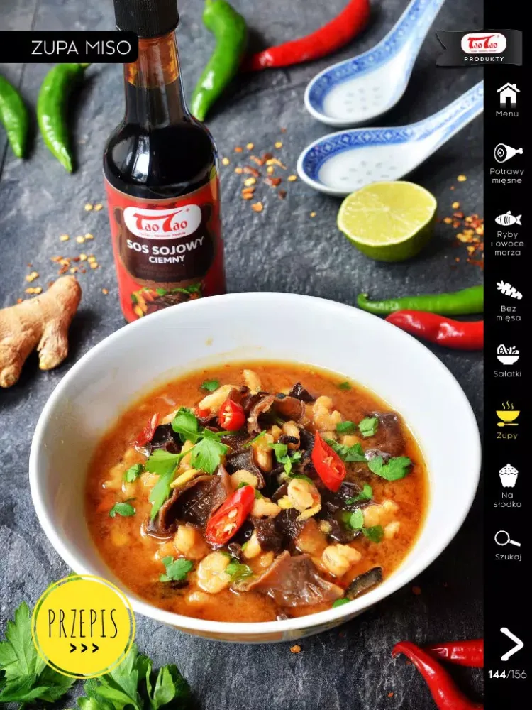 "Kuchenne inspiracje z TaoTao" to wyjątkowa książka kucharska dzięki, której każdy może tworzyć unikalne kompozycje smakowe bez konieczności wychodzenia z domu, wykorzystując sosy sojowe i sosy chili, makarony ryżowe, warzywa orientalne oraz orientalne specjały takie jak: mleczko kokosowe, olej sezamowy, ocet ryżowy, sos rybny, pasta curry czy papier ryżowy TaoTao. Czytelnicy znajdą w niej podział na sześć sekcji tematycznych dopasowanych do ich indywidualnych potrzeb smakowych: potrawy mięsne, ryby i owoce morza, bez mięsa, sałatki, zupy oraz potrawy na słodko.
