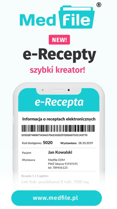 Aplikacja do prowadzenia elektronicznej dokumentacji medycznej i e-Recept Medfile® zsynchronizowana jest z kalendarzem głównym w responsywnej aplikacji webowej, platformą ZnanyLekarz oraz kalendarzem Google. Przejście do responsywnej karty pacjenta umożliwia przeprowadzenie wizyty z poziomu urządzenia mobilnego - telefonu lub tabletu. Możliwość personalizacji dostępów dla rejestratorów, lekarzy czy pielęgniarek.