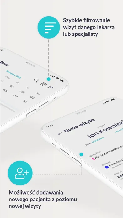 Aplikacja mobilna zainstalowana na telefonie monitoruje pracę całego gabinetu. To rozwiązanie, dzięki któremu z pewnością zwiększy się ilość pacjentów na wizytach, ponieważ w łatwy i przejrzysty sposób można sprawdzać wolne godziny przyjęć, zapisywać pacjentów na konsultacje czy odwoływać wizyty.